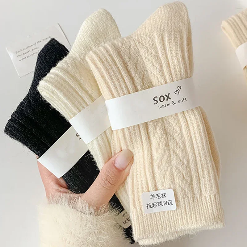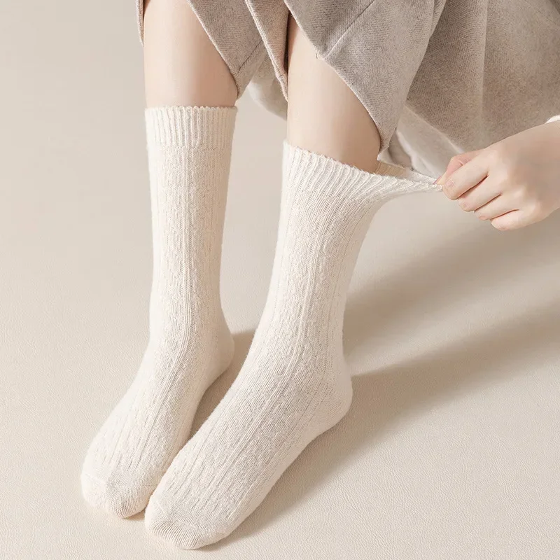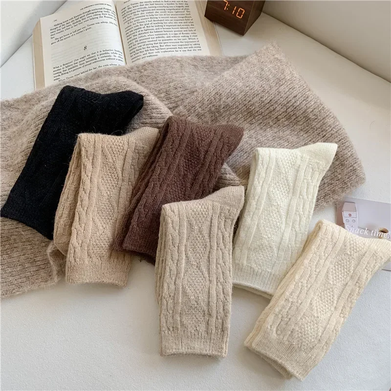 5Pairs Casual Thick Cashmere Socks Women Girls Japanese Harajuku Solid Color Wool Sock Fuzzy Soft Thermal Home Sleeping Stocking